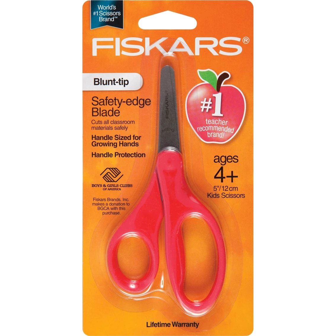 Children love Fiskars blunt-tip kids scissors for the handle that’s shiny, bright and smooth, not ‘sticky’ or ‘bumpy.’ Teachers and parents love the safe design and the antimicrobial handle protection. Like all of Fiskars kids scissors, these blunt-tip kids scissors feature an innovative safety-edge blade for high-quality cutting with a safer blade angle, plus a larger finger loop and an ergonomic thumb loop to provide a natural, more comfortable fit for kids’ fingers. Model: 7710668.