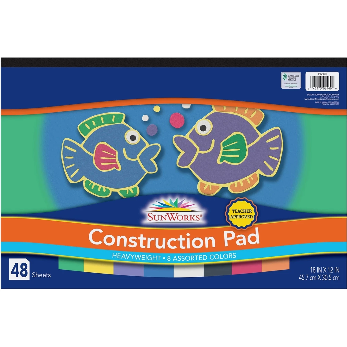 This portable pad from Pacon contains 18 x 12 in. Heavyweight Construction Paper in eight colors: scarlet, orange, blue, violet, green, yellow, black and white. Great for both home and school use, this recyclable paper is perfect for beginner arts and crafts. 48 sheets.
