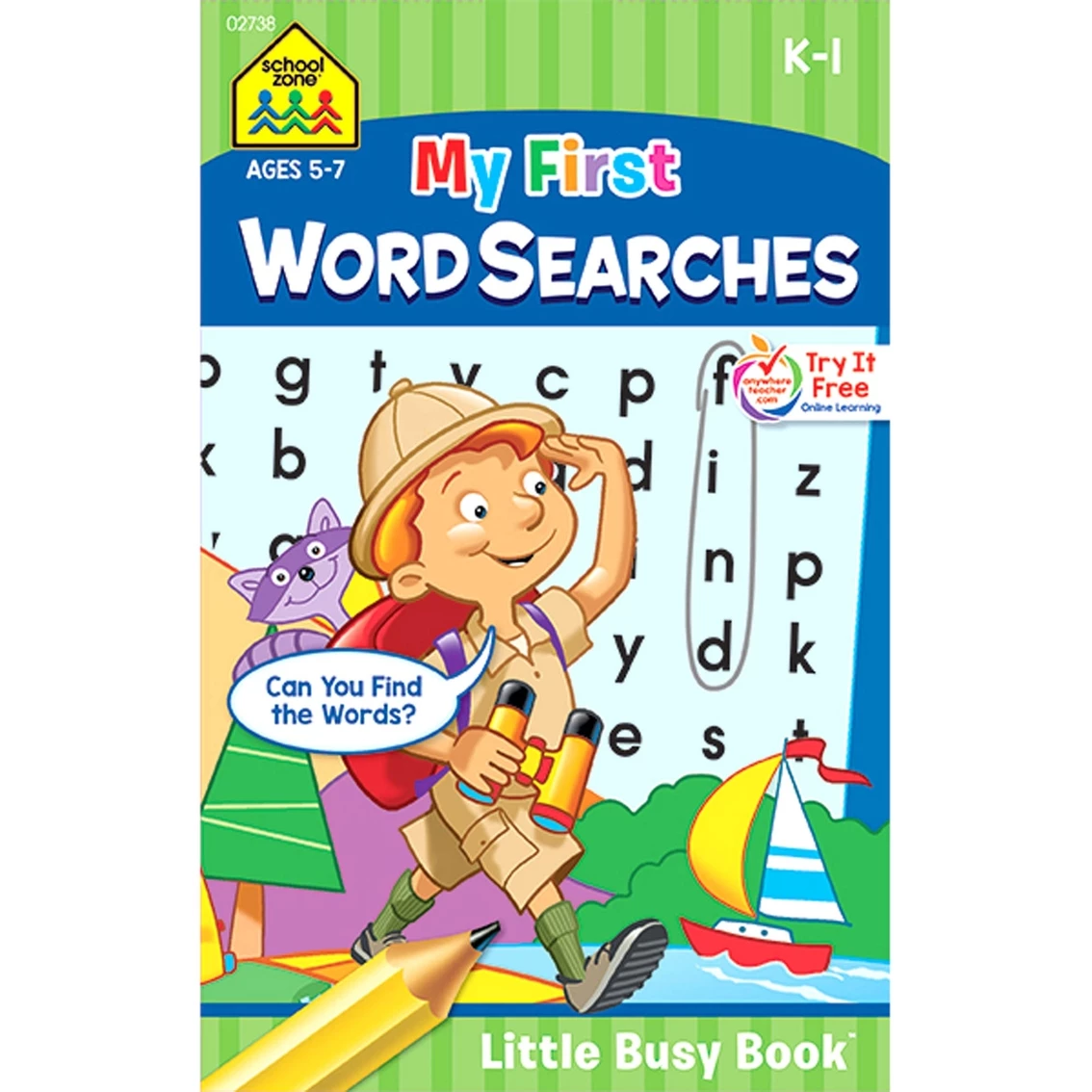 Find it, circle it, say it. This cute little book from School Zone contains 48 word search puzzles on a pad small enough to fit in any bag, perfect for keeping your little ones occupied anytime, anywhere. Your child is sure to enjoy finding the themed list of words on each page. Hunting for them reinforces concentration, spelling and vocabulary skills. Themes help with classifying. The individual words and patterns enhance children’s knowledge of long and short vowel sounds, opposites, rhyming words and more. Help your child find fun in words and build a foundation for lifetime learning.