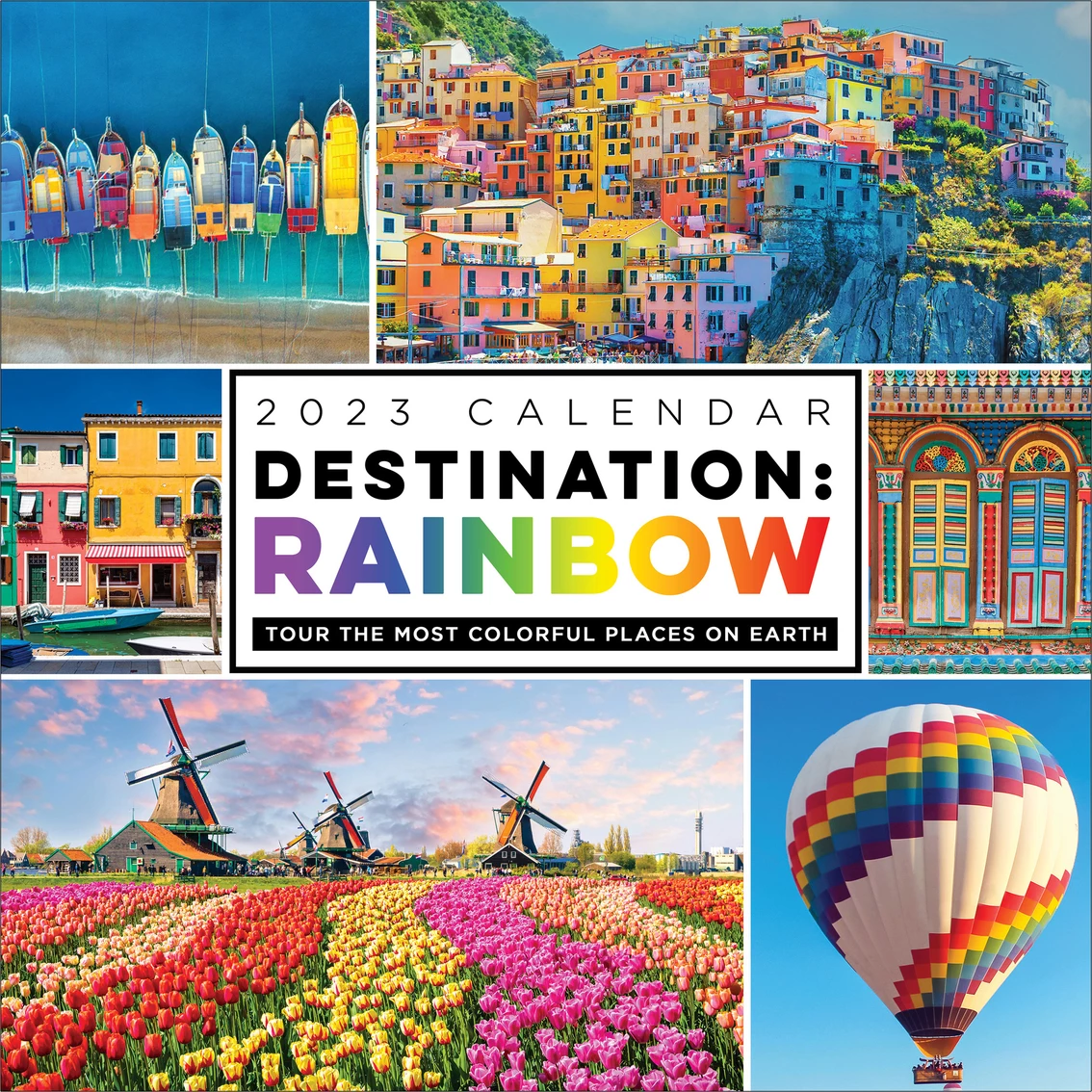Live colorfully! Visit some of the most vibrant and beautiful locations on Earth with the 2023 Destination Rainbow calendar! Enjoy 13 full color images with locations included to brighten your day and inspire your next adventure. Measuring 12 in. x 12 in., this wall calendar printed on premium gloss paper, combines gorgeous photography with monthly calendar grids to help you keep your life organized. Model: WAL-23-1025.