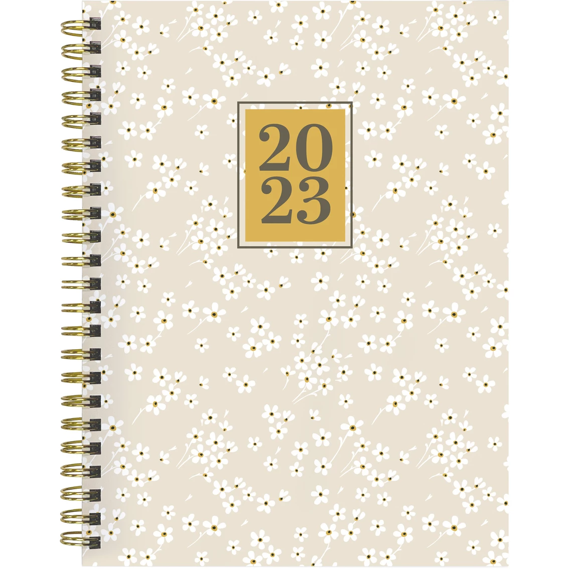As pretty as it is functional, TF Publishing’s 2023 planner with a sweet tiny blossom cover design is sure to keep you organized! Measuring 6.5 in. W x 8 in. H, this all-encompassing medium planner, boasts monthly, 2-page spreads that include lined sections for notes, tasks and goals and weekly, 2-page spreads with lined daily sections to keep plans neat and organized, plus a dedicated weekly priorities section to help keep you focused. The interior pages are designed with a classic and refined feel, accented with faux monthly tabs for easy access to weekly planning. Enhance your daily plans with 216 color coordinating stickers to highlight special occasions and personalize your planner. Bonus lined notes pages are in the back with yearly 2022 and 2023 views in the front. Featuring a durable, textured cover and sophisticated, gold wire-o binding designed to lay flat when open, this 12-month planner covers January 2023 to December 2023 and contains no plastic — goods without guilt!