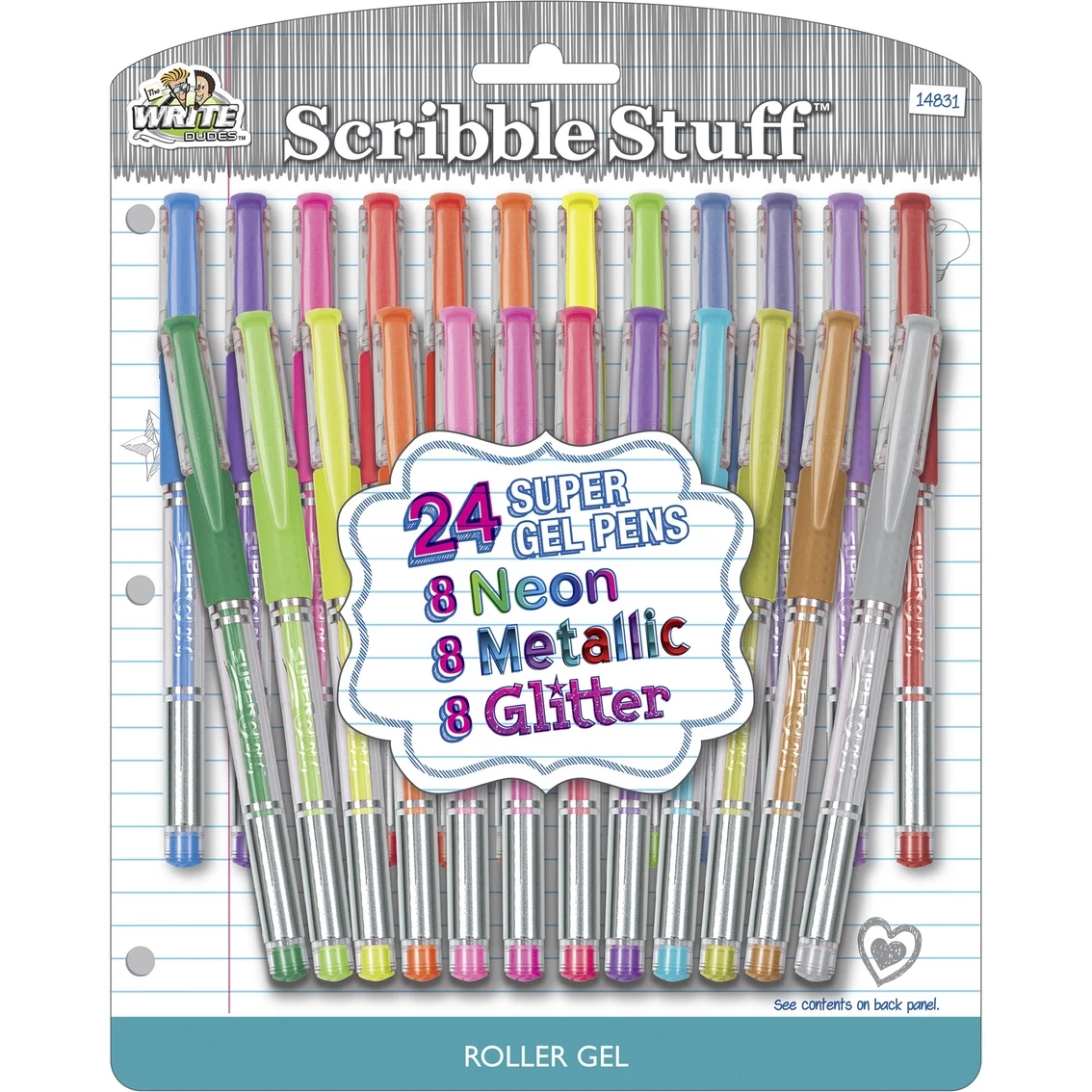 Stand out in style with these Scribble Stuff gel pens in 3 different varieties: Glitter, Neon and Metallic inks. Each gel pens variety pack includes 24 smooth writing gel-ink pens, with soft comfort grips and handy clips so you can attach them to your notepad, shirt pocket or more. Super-stylish and available in a wide variety of colors, these pens write on black and white paper for extra fun! It’s the perfect combination of pens for work, home and school.
