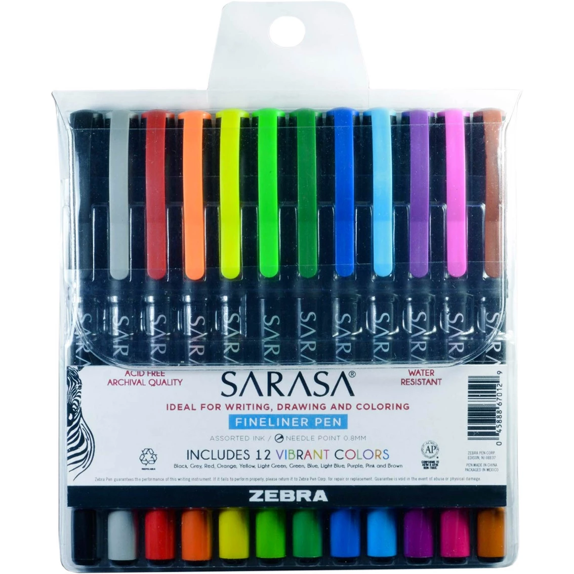 The Zebra Sarasa Fineliner defines new fine ink performance for a unique writing and drawing experience. The needle point tip allows for easy ink flow with very little pressure needed, resulting in a smooth ink laydown. Water resistant ink is acid free and archival quality. It includes a vibrant, color palette with long lasting color vibrancy. Perfect for everyday writing, drawing and coloring.